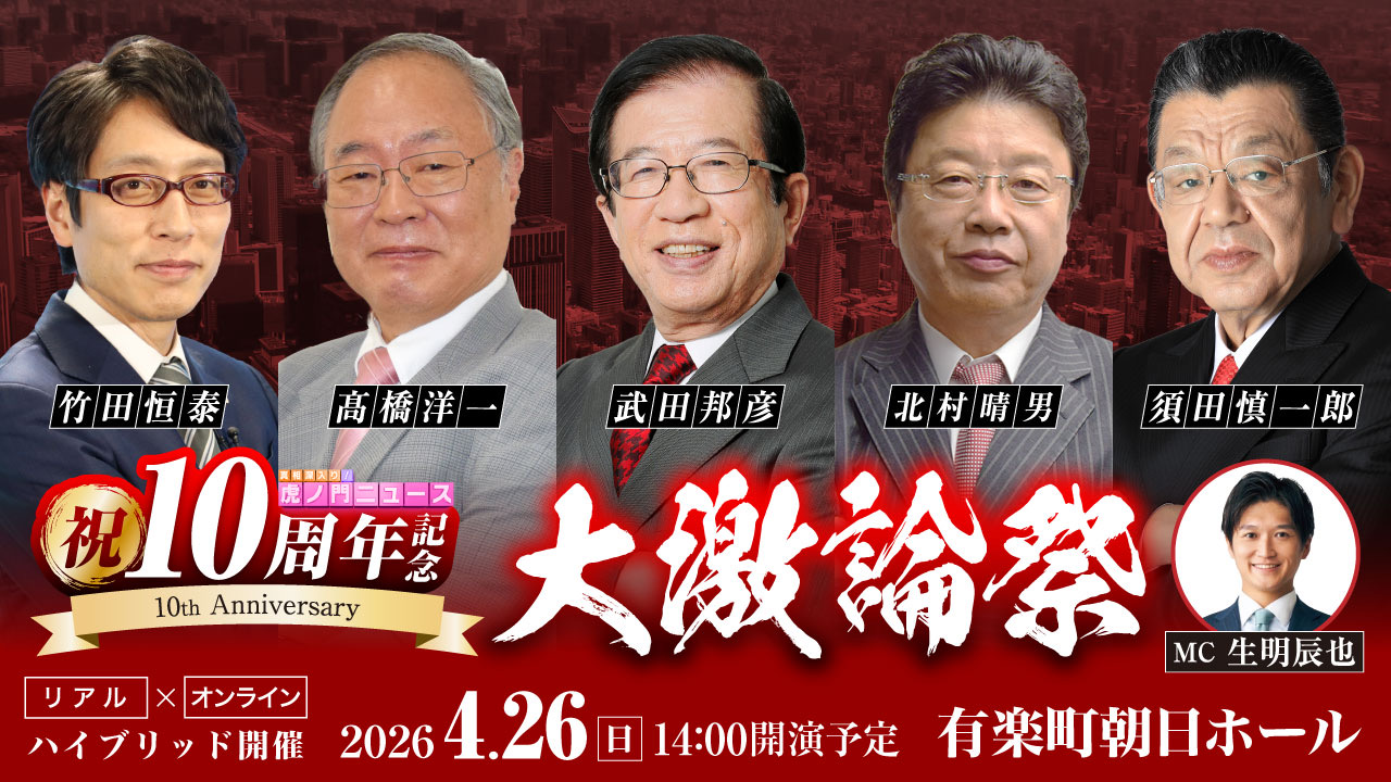 ホーム 2026年04月03日2023年04月24日 <10周年記念 [リアル×オンライン] イベントを開催!> イベントの詳細はこちらから! <番組スポンサー 大募集> 「真相深入り! 虎ノ門ニュース」では番組のスポンサーになっていただける企業様を大募集中です!以下の応募フォームからお問い合わせくださいませ。何卒よろしくお願い申し上げます。 「真相深入り! 虎ノ門ニュース」番組スポンサー 応募フォーム お知らせ 【お知らせ】真相深入り! 虎ノ門ニュース 10周年記念 [リアル×オンライン] イベントを開催!2026年2月13日 【運営】年末のご挨拶2025年12月27日 【お知らせ】スタジオ観覧について2025年1月31日 YouTubeチャンネル 「真相深入り! 虎ノ門ニュース」YouTubeチャンネル 公式 X(旧Twitter) Tweets by toranomon8